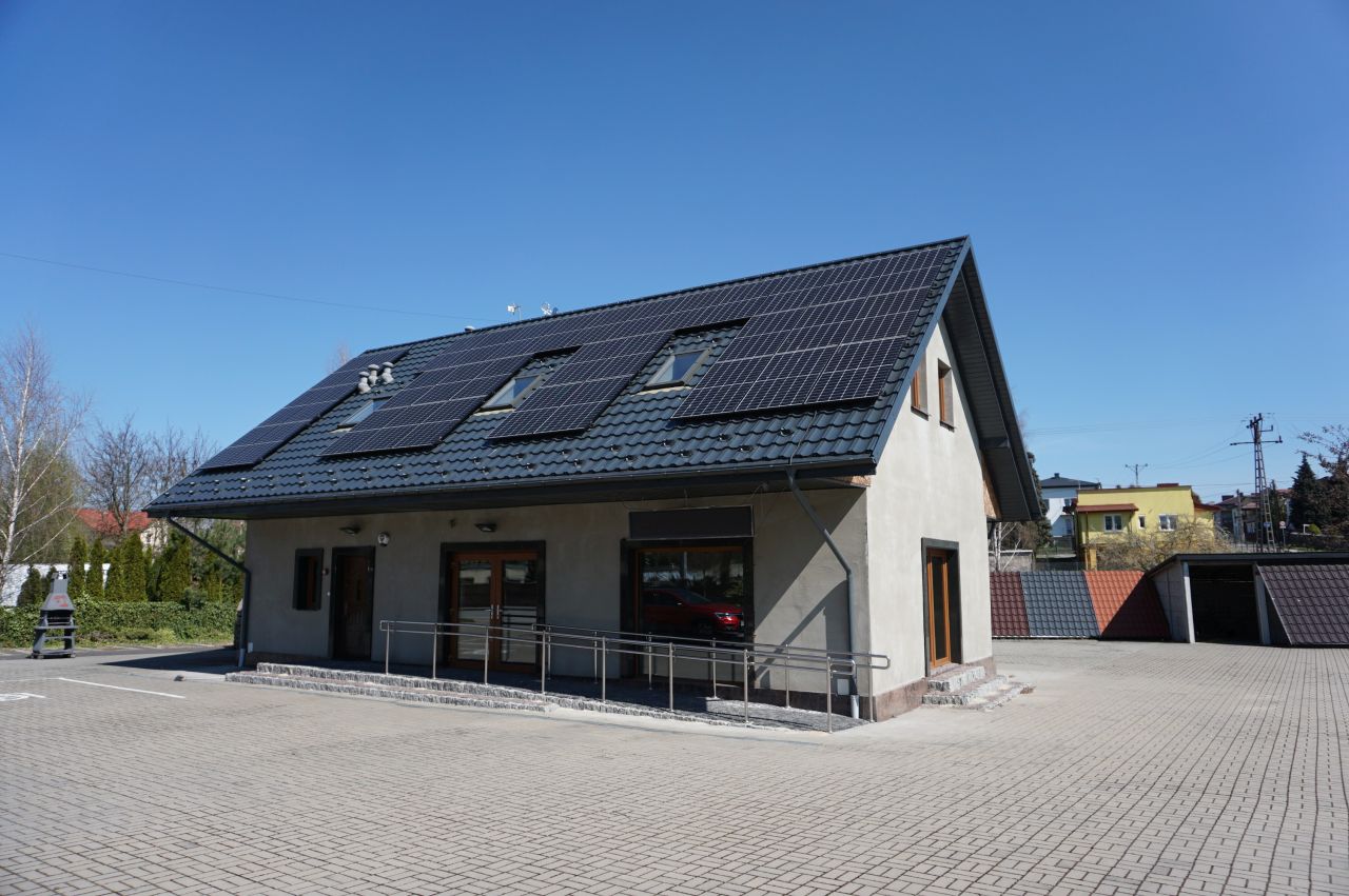Do sprzedaży obiekt usługowy w centrum Warki przy ulicy Cmentarnej. Budynek użytkowy nowy z 2019roku parterowy z poddaszem o powierzchni użytkowej 140m2. Budynek część murowana i część konstrukcji drewnianej, ocieplenie- wełna mineralna + siatka i klej. Dach skośny pokryty blachą. Na dachu zamontowane panele fotowoltaiczne. Okna PCV 7komorowe firmy Jezierski. Na parterze budynku wiatrołap, sala wystawowa, pomieszczenie socjalne, kotłownia, wc, klatka schodowa. Parter w pełni wykończony , gotowy do użytkowania. Na poddaszu powierzchnia otwarta do zagospodarowania i wykończenia, łazienka , pomieszczenie socjalne, klatka schodowa. Budynek przystosowany dla osób niepełnosprawnych.