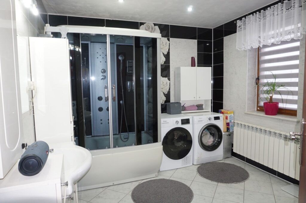 Media: prąd, woda, kanalizacja i gaz z sieci gminnej, ciepła woda o ogrzewanie – piec co na pellet; ogrzewanie podłogowe na parterze (kuchnia, przedpokój i łazienka; klimatyzacja; dodatkowo panele fotowoltaiczne 4,4 kWh, solar na wodę.