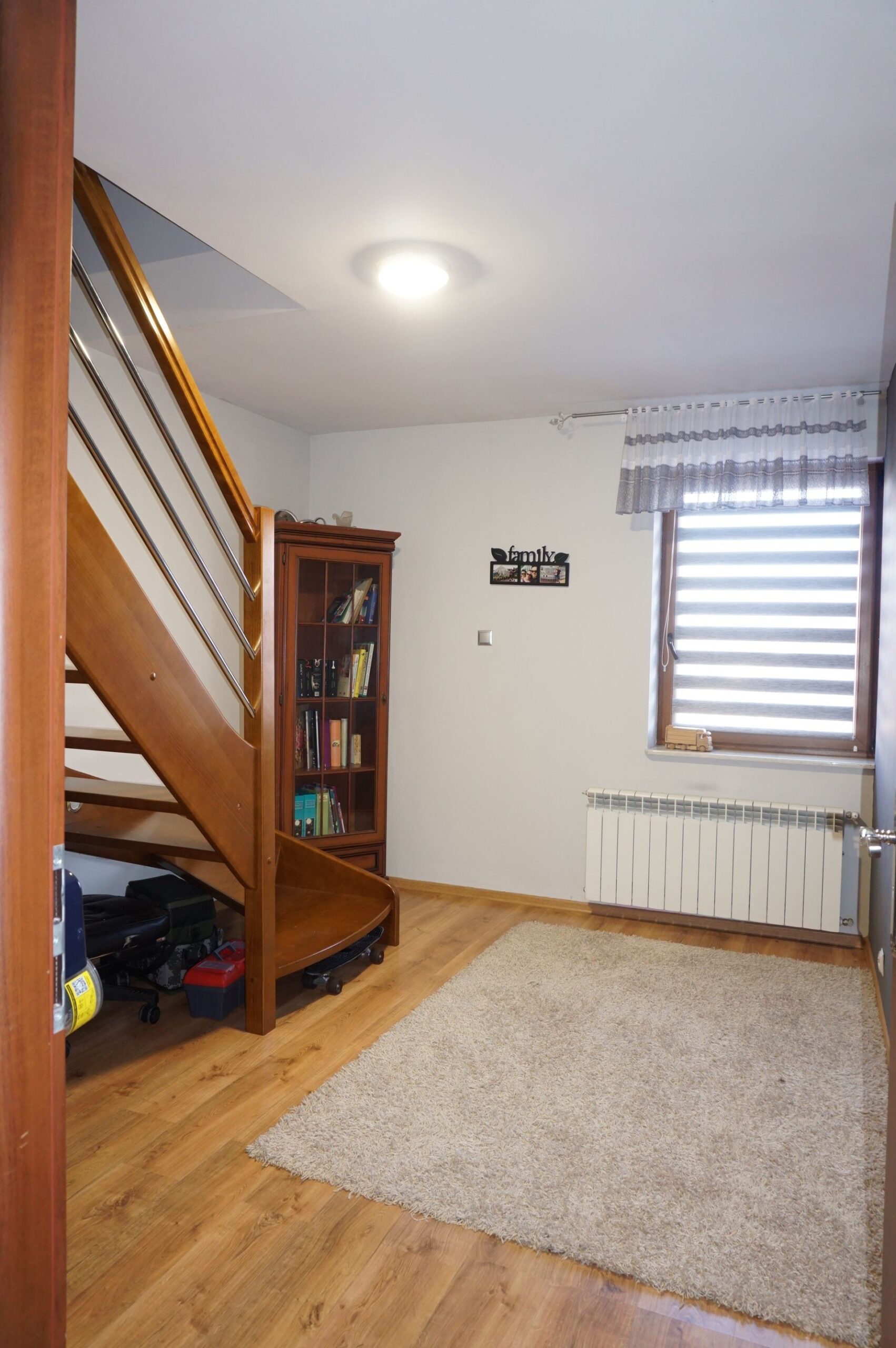 – parter- korytarz, łazienka, kuchnia, salon, 2 pokoje, kotłownia , schody ,