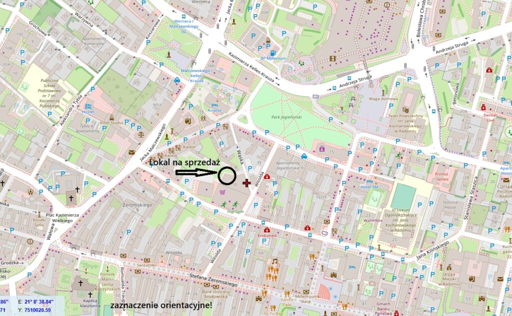 Do sprzedaży lokal użytkowy w Radomiu w bardzo dobrej lokalizacji w Śródmieściu przy ulicy Wąskiej, w najbliższym otoczeniu między innymi : pasaż handlowo-usługowy, Urząd Miasta , Urząd Wojewódzki , Galeria Słoneczna , Teatr, Park Miejski, szkoły podstawowe, liceum.
