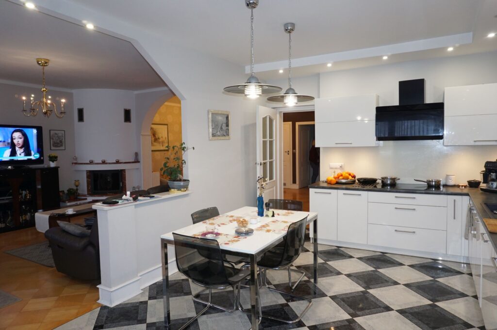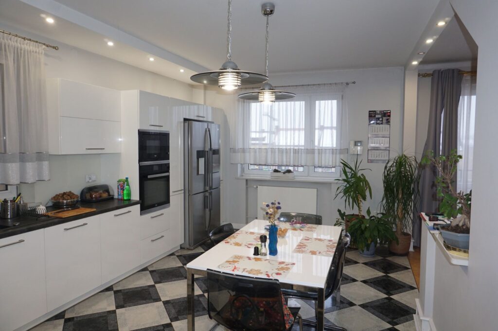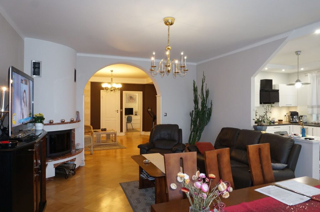 Budynek piętrowy mieszkalny z częścią handlową w parterze. Mieszkanie o powierzchni użytkowej 235m2 , usytuowane jest na dwóch poziomach (1 i 2 piętro) plus poddasze. W pełni umeblowane i wyposażone m.in.: