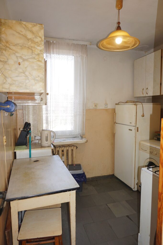 Mieszkanie o powierzchni 44 m2 usytuowane jest na 4 piętrze , z wystawą okien na południe i północ. Mieszkanie składa się z 2 pokoi, kuchni, łazienki z wc i przedpokoju, posiada piwnicę. Okna PCV, na podłogach PCV . Mieszkanie do remontu.