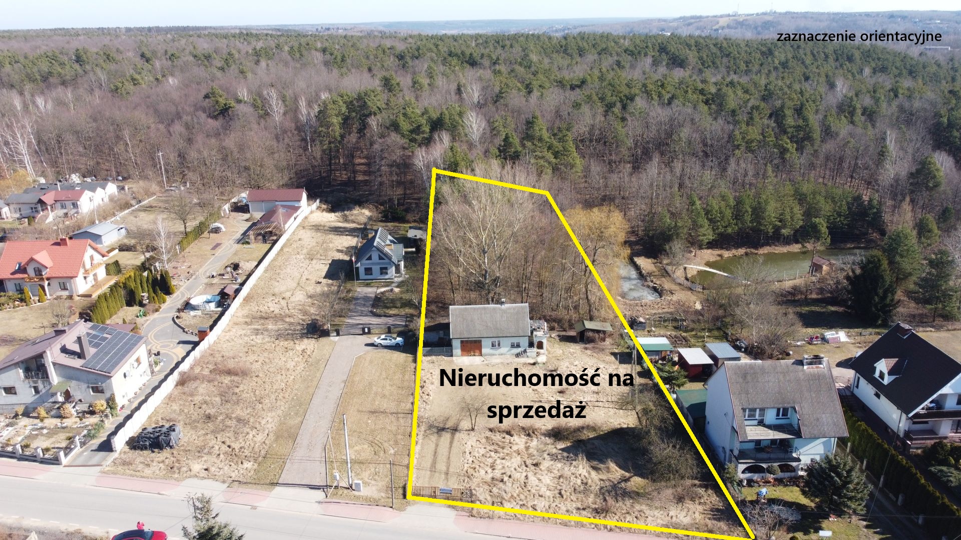 Działka budowlano-rolna o powierzchni 3800m2 o szerokości 32m od frontu , częściowo ogrodzona, za budynkami na działce niewielki las.