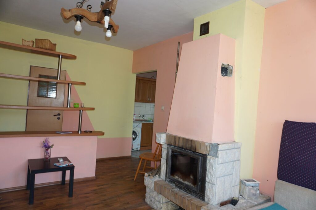Część mieszkalna składa się z :  wiatrołapu, pokoju z aneksem kuchennym , salonu z kominkiem oraz łazienki. W części gospodarczej duży garaż z kanałem.