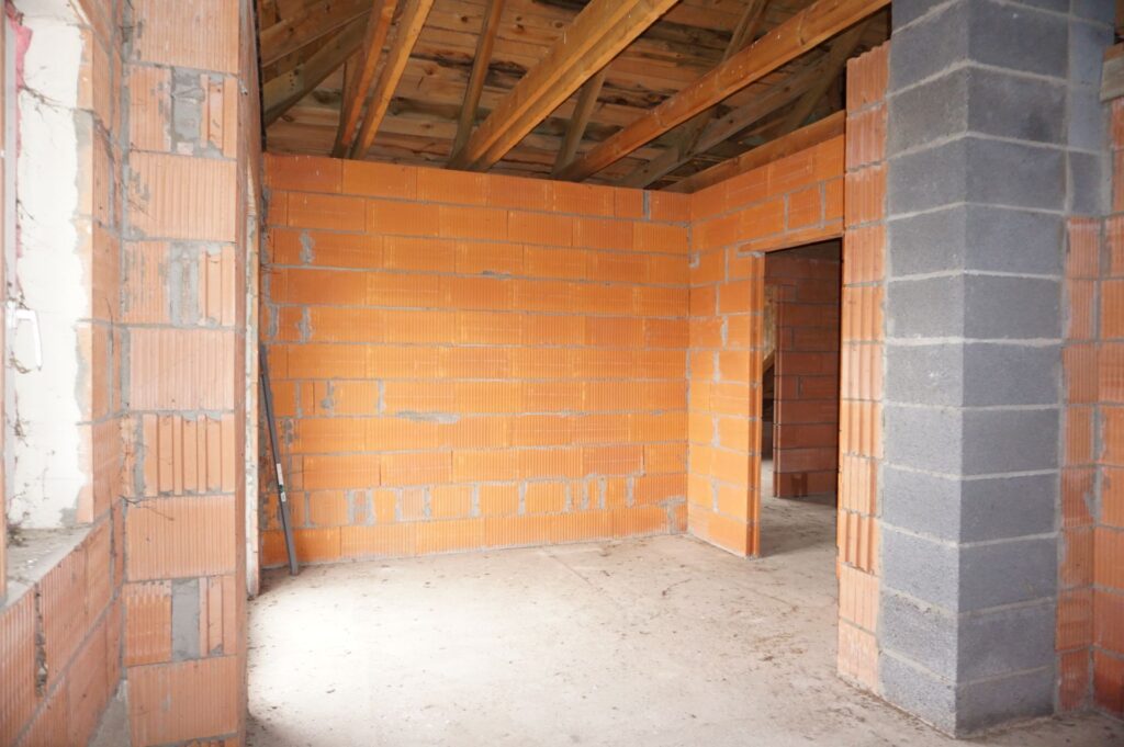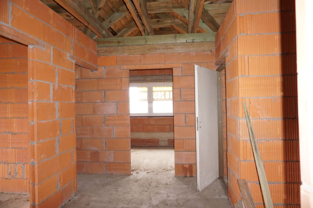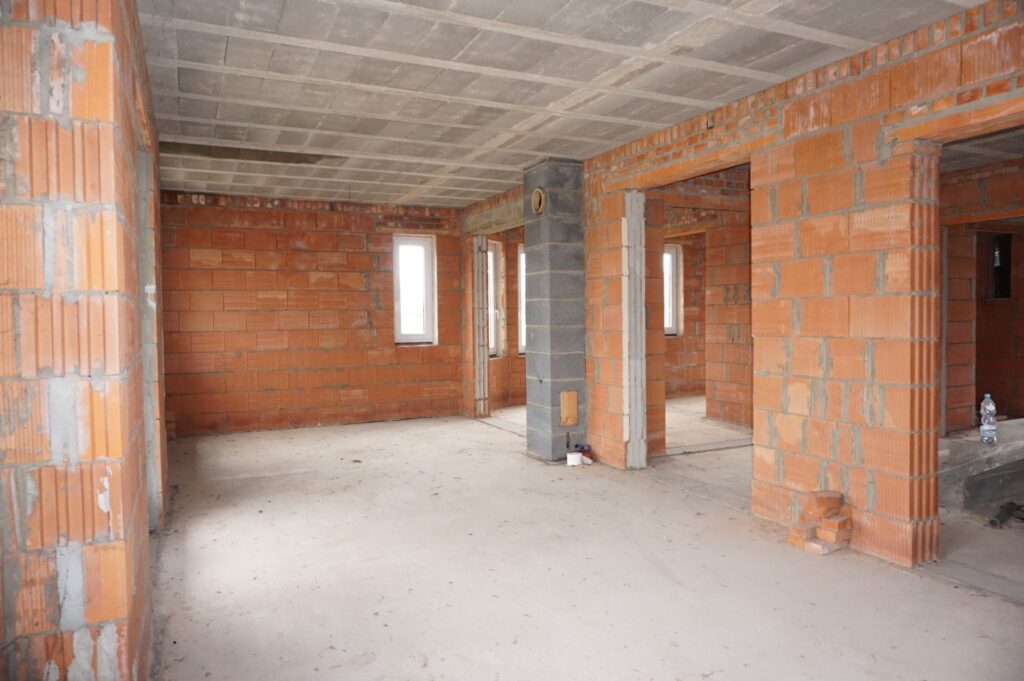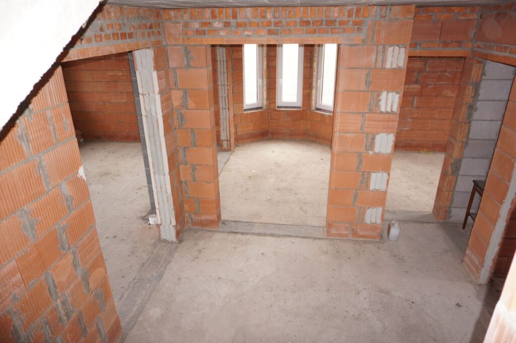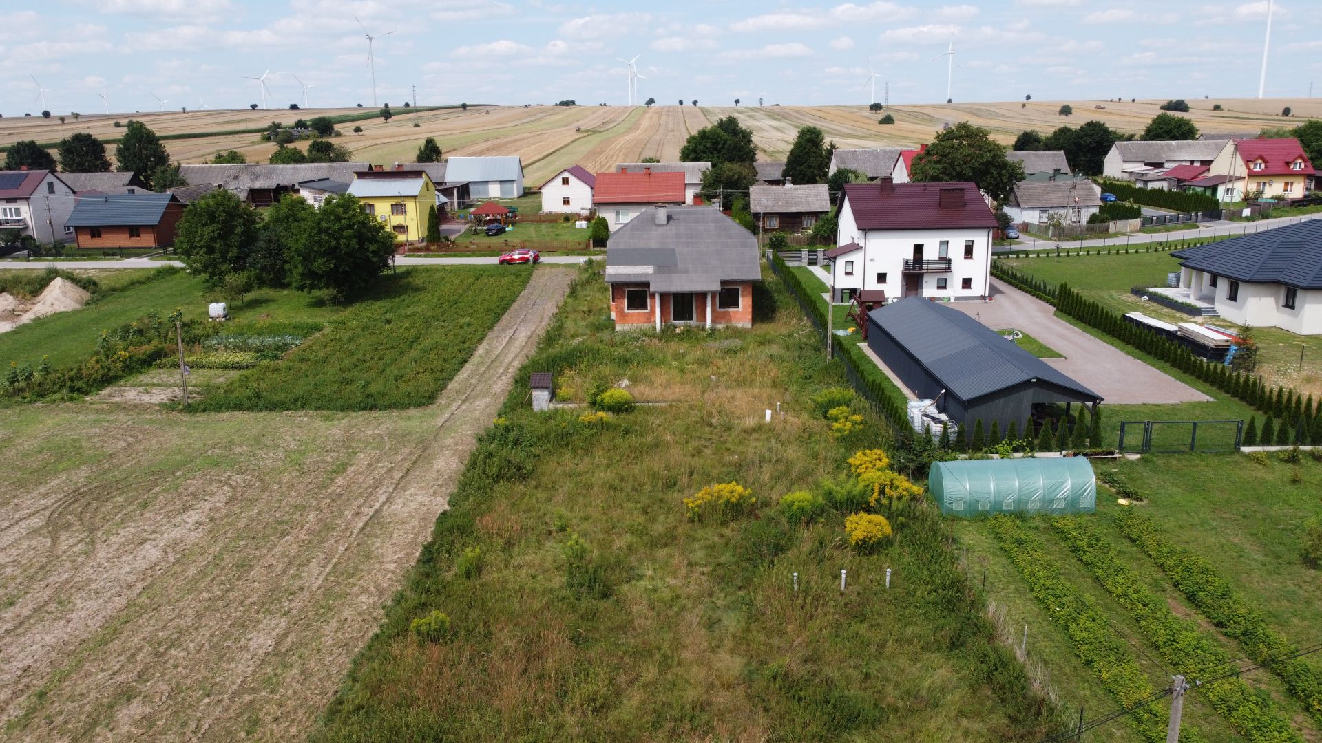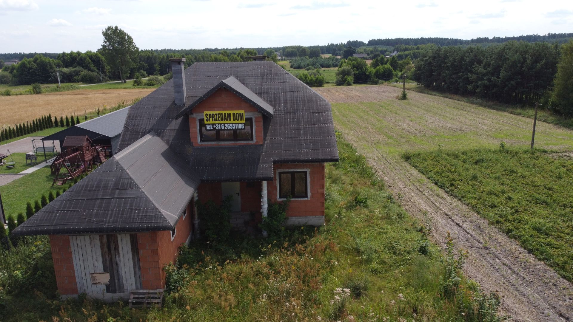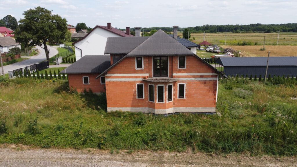 Budynek mieszkalny parterowy z użytkowym poddaszem o powierzchni użytkowej 145,42m2. Dom w stanie surowym, w 2012 roku rozpoczęta budowa, murowany z cegły czerwonej max, stropy żelbetowe TERIVA I, dach przykryty papą.