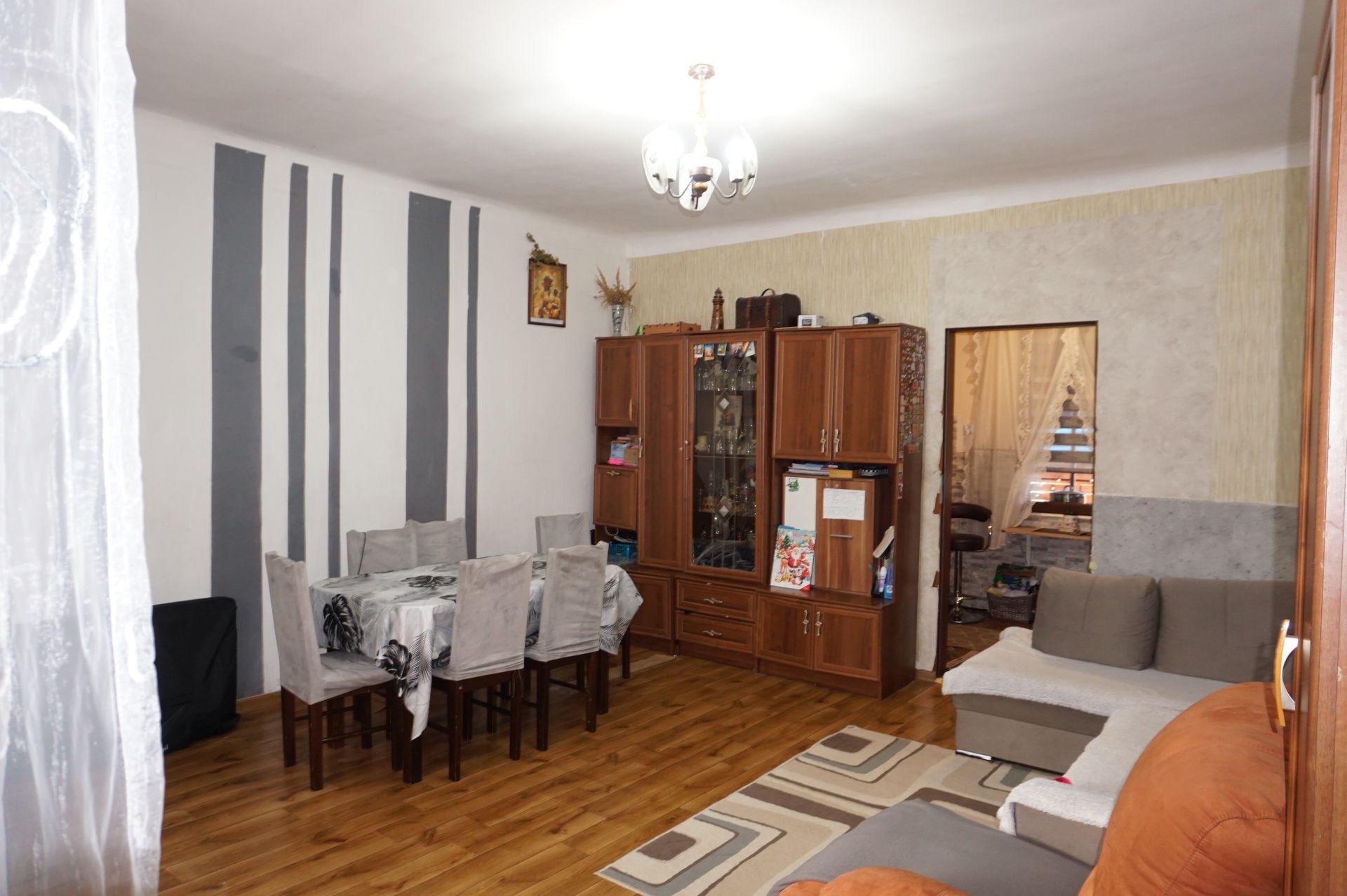 Dom parterowy o powierzchni użytkowej 64m2 częściowo podpiwniczony, z 1968 roku, murowano- drewniany. Budynek ocieplony styropianem, położony klej, dach skośny pokryty blacha trapezową.